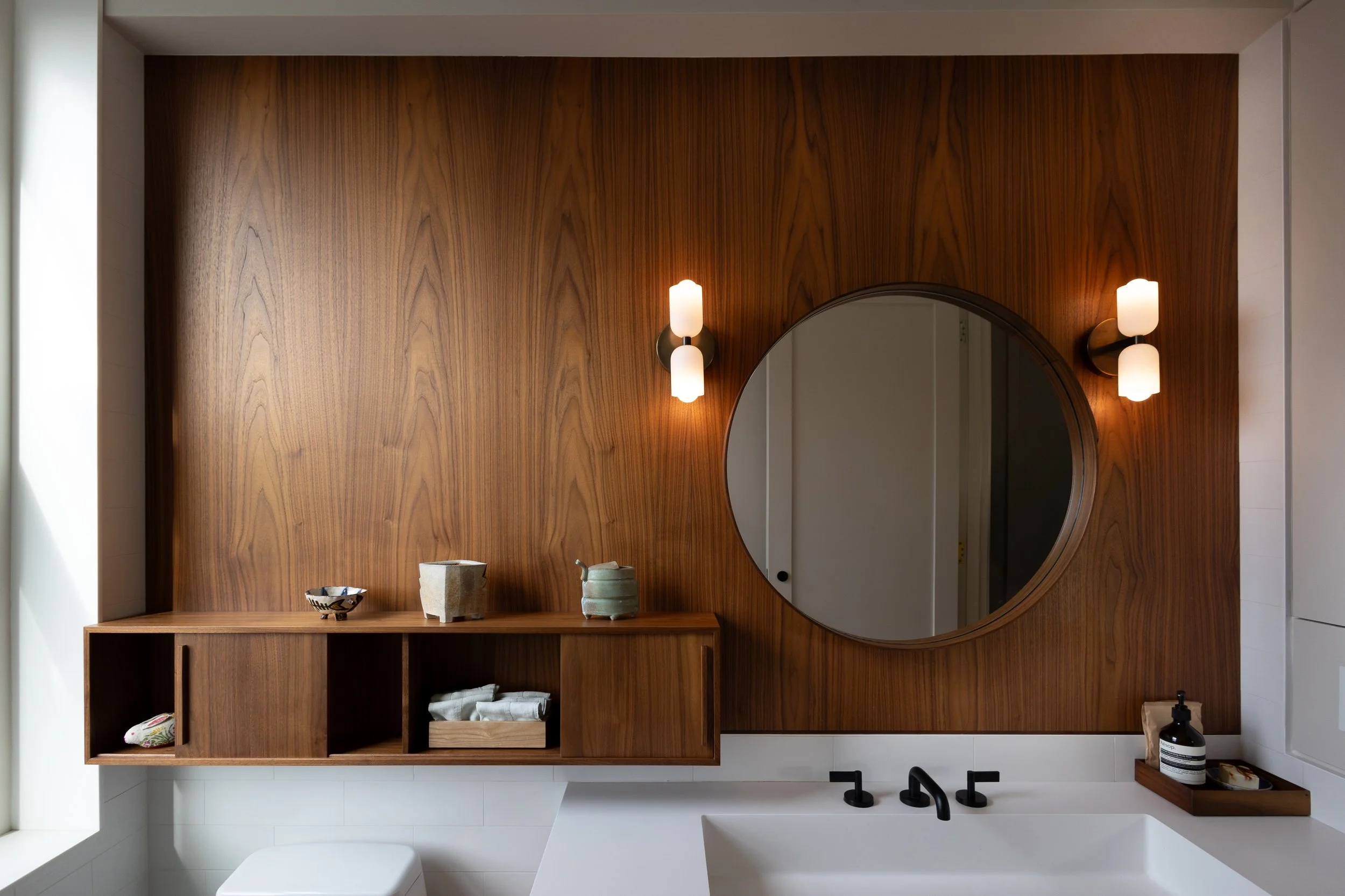 Walnut Bath Cabinet and Wall Paneling Replica: Pierre Debeaux "Meuble suspendu, pièce unique" White Oak Kitchen Island Private Foundation BKLYN CLAY GAS WORKS Heart Pine Vanity Cowlick Barber Shop C-Tables Walnut Built-in Cabinet Custom Walnut Radiator Cover